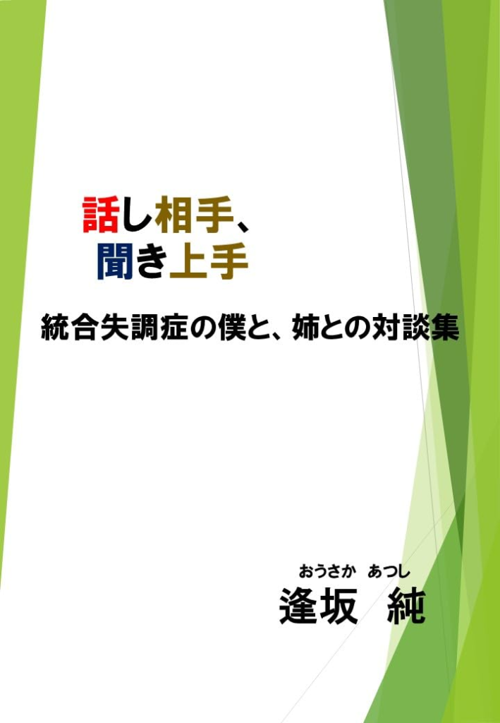 逢坂純著書『話し相手、聞き上手 統合失調症の僕と、姉との対談集』(2023年刊)は、著者自身が20年以上にわたり向き合ってきた統合失調症の日常を、姉とのリアルな会話を通じて描いた当事者本です。
